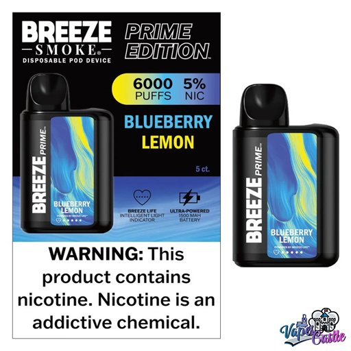 The Blueberry Lemon Breeze Prime provides up to 6000 puffs, depending on how long and how often you vape.