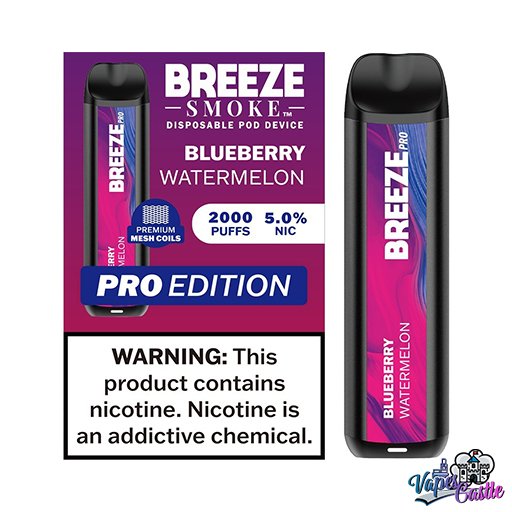 Each Blueberry Watermelon Breeze Pro 2000 contains 5% (50mg) nicotine salt for smooth and satisfying vapor production.