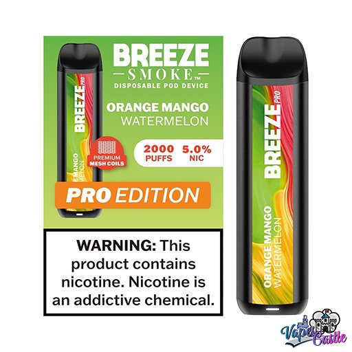 The Breeze Pro Orange Mango Watermelon offers an unbeatable fruit medley for fans of bold yet balanced flavors. Whether you’re a casual user or a daily vaper, the device provides reliable performance with each puff thanks to its mesh coil system and high-quality nicotine salt formula (5%).