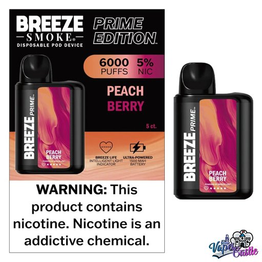 Each puff of this Peach Berry 6k vape delivers 5% (50mg) nicotine salt, providing a smooth throat hit and quick satisfaction. Whether you’re switching from smoking or just prefer a stronger device, the Peach Berry Breeze Prime delivers clean, consistent nicotine without harshness.